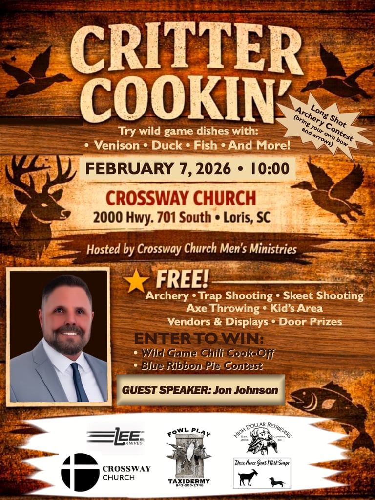 We hope you can join us at our upcoming Critter Cookin'!
