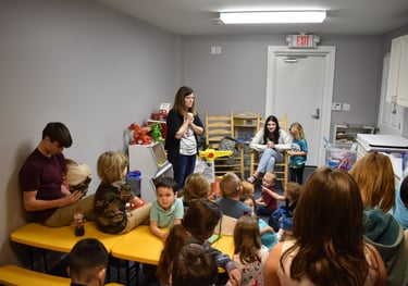 Our children meet in Children’s Church on Sunday mornings at 9:00 am and Sunday evening at 5:00 pm. The children also come together on Wednesday nights at 7:00 pm after the fellowship meal at 6:30 pm.